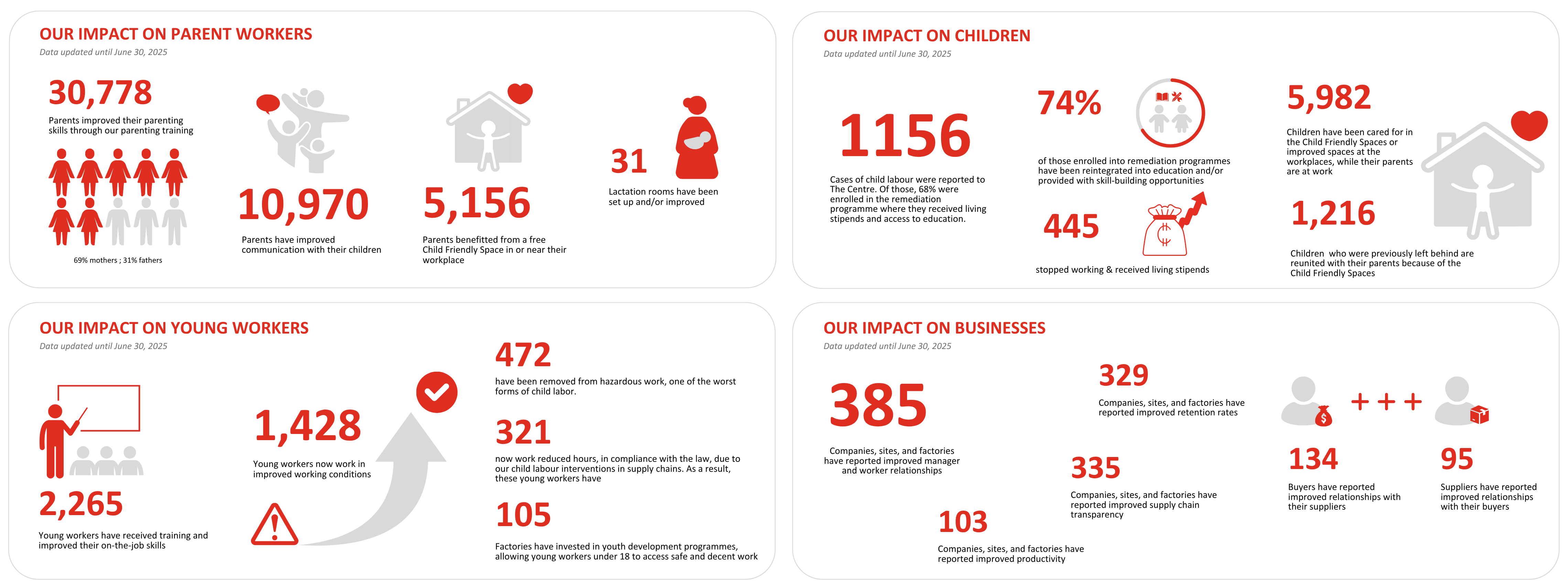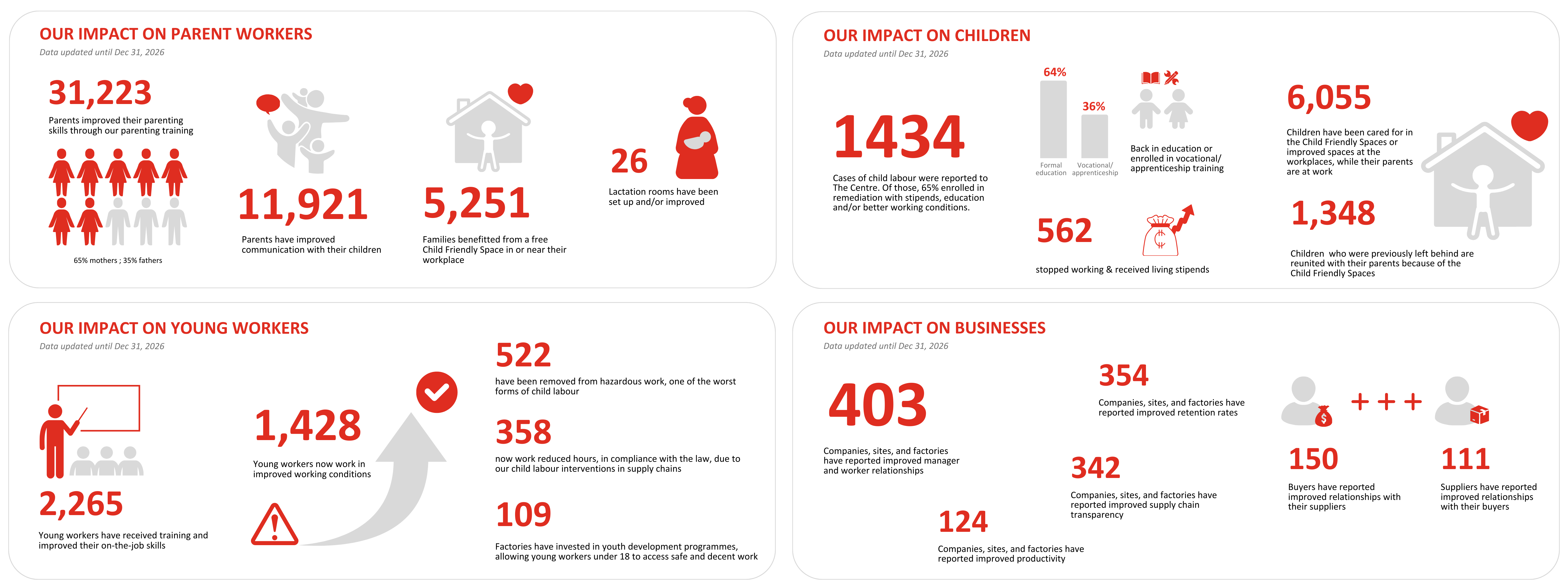 Our work positively impacts the lives of children, working parents and young workers and contributes towards more sustainable supply chains.
