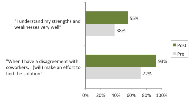 The pre and post training comparison clearly shows a change in awareness among participants and will hopefully pave the way towards positive change in their attitudes towards work. For employers, this change can be reflected in lower turnover rates, smoother communication between management and line workers, reduced conflict, higher morale and increased productivity. Young workers make up a substantial part of China's workforce. Investing in their future will not only help them reach their full potential, it will benefit business as well.